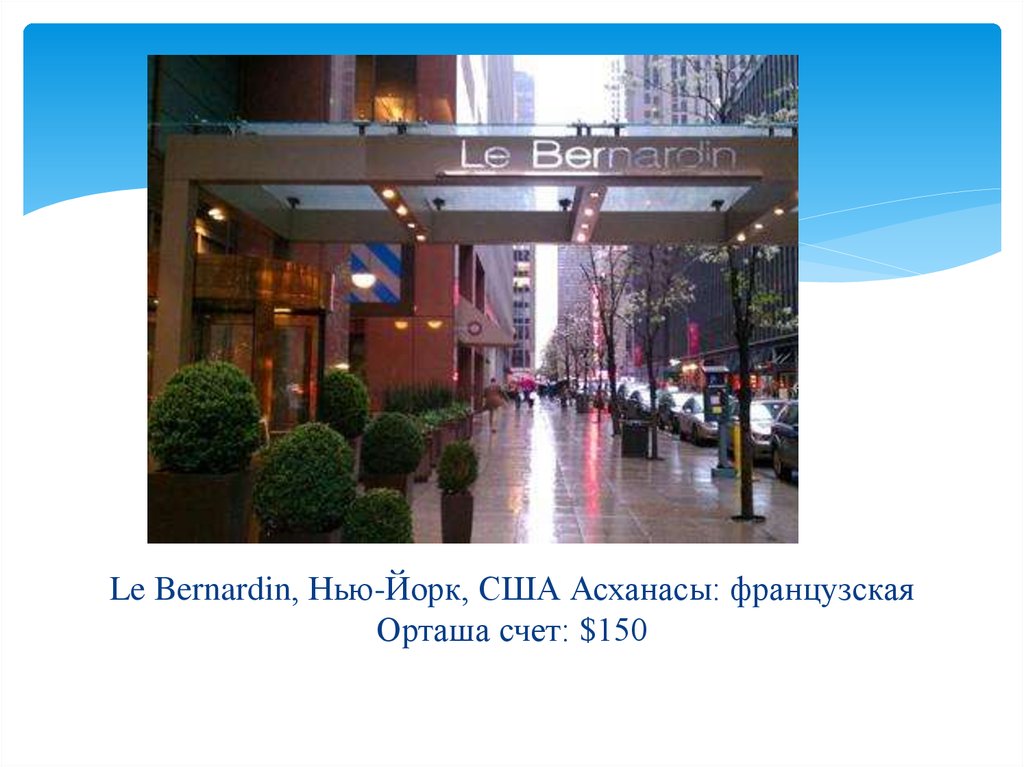 Le Bernardin, Нью-Йорк, США Асханасы: французскаяОрташа счет: $150