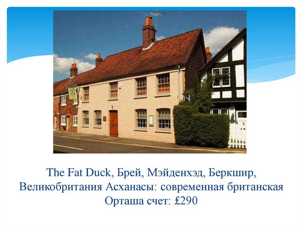 The Fat Duck, Брей, Мэйденхэд, Беркшир,Великобритания Асханасы: современная британская