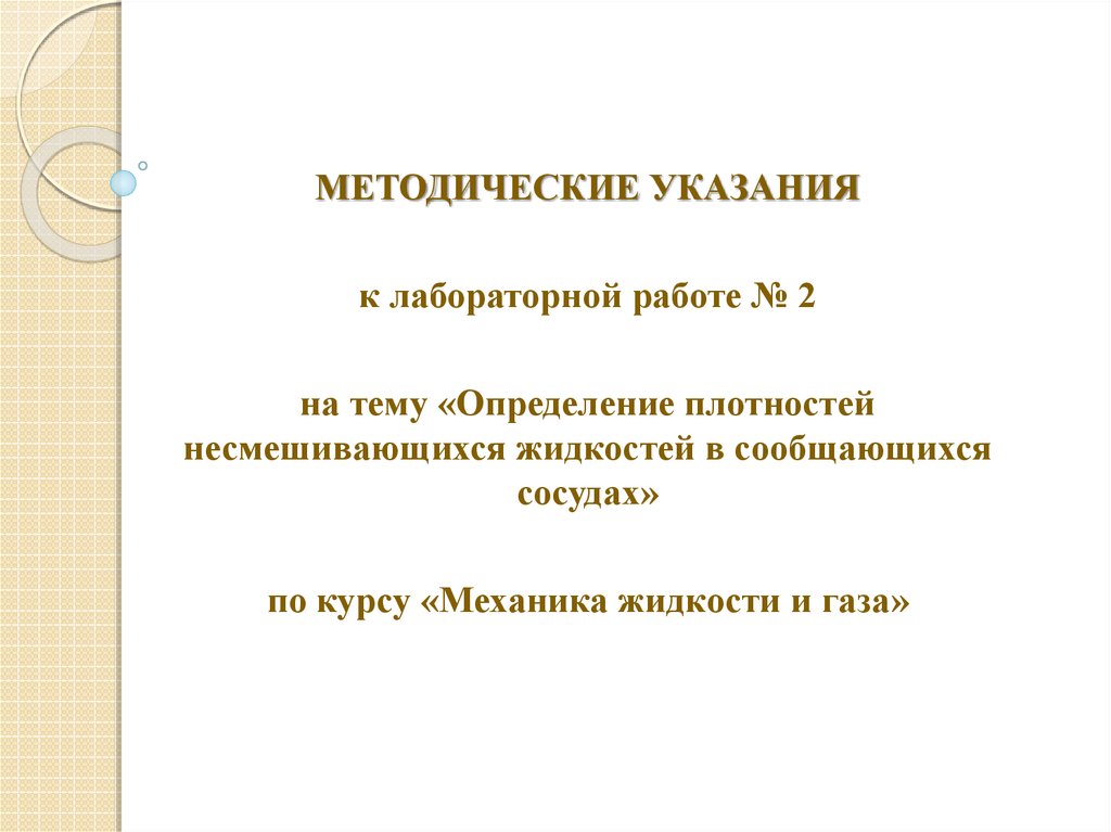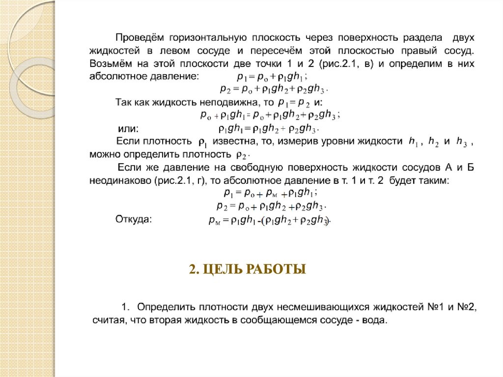 1. КРАТКАЯ ТЕОРЕТИЧЕСКАЯ ЧАСТЬОпределение плотности жидкости в сообщающихся сосудах