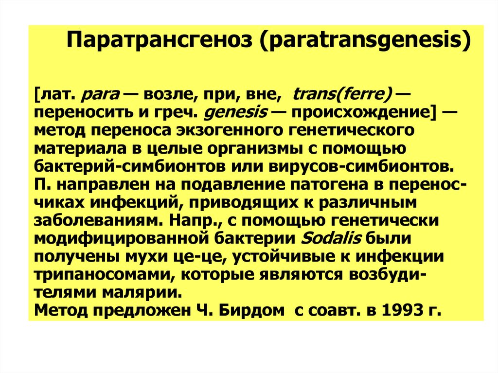 Паратрансгеноз (paratransgenesis)[лат. para — возле, при, вне, trans(ferre) —