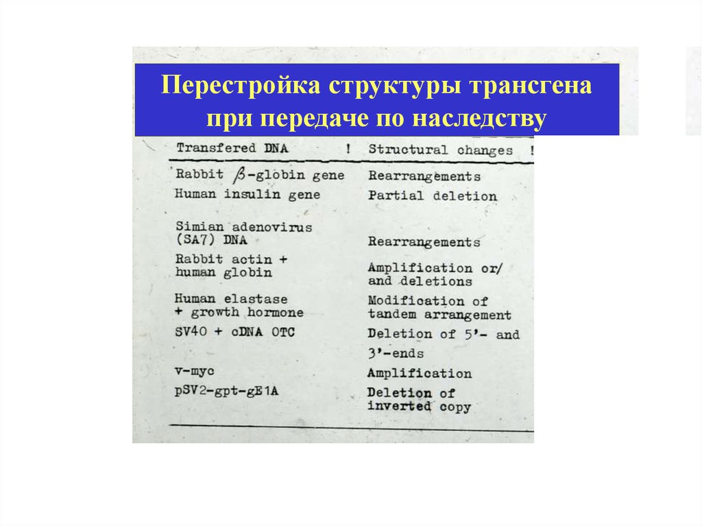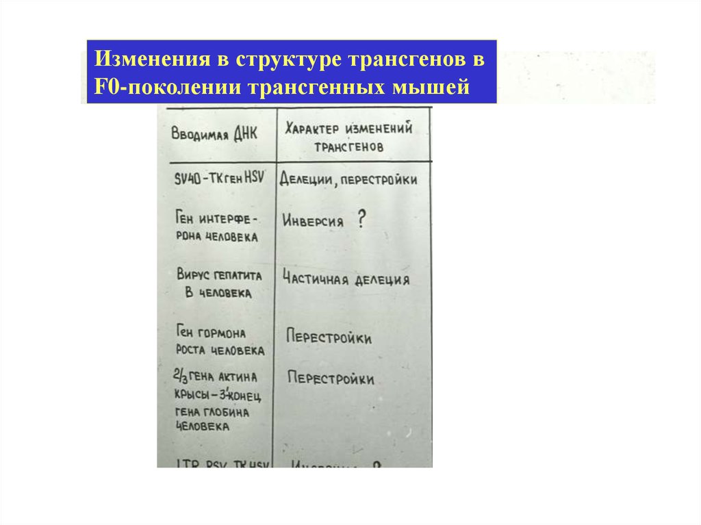 Изменения в структуре трансгенов вF0-поколении трансгенных мышей