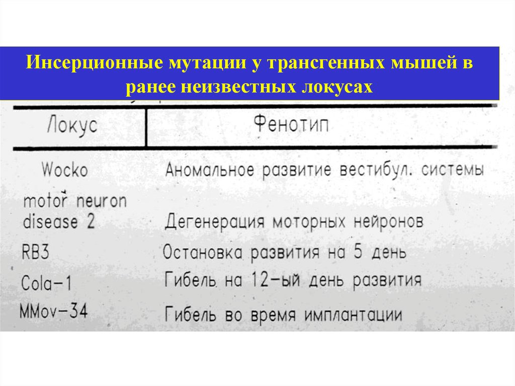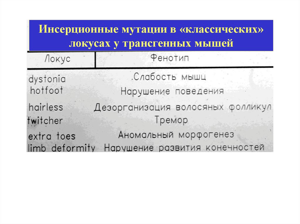 Инсерционные мутации в «классических»локусах у трансгенных мышей