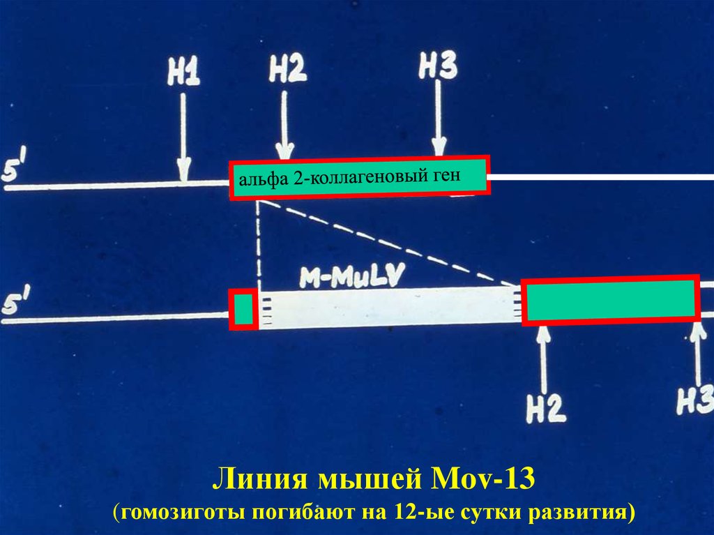 Линия мышей Mov-13(гомозиготы погибают на 12-ые сутки развития)