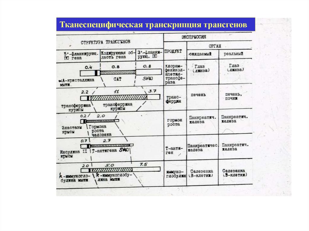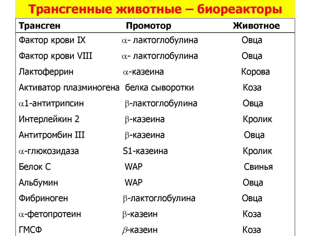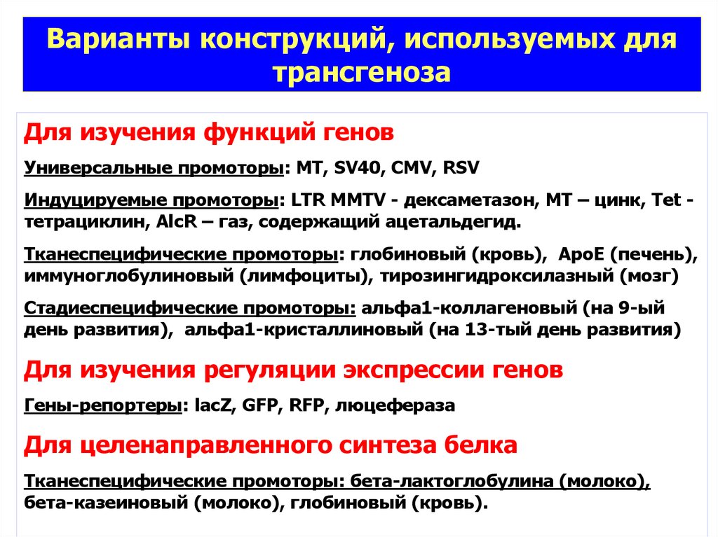 Тканеспецифические промоторы: бета-лактоглобулина (молоко),