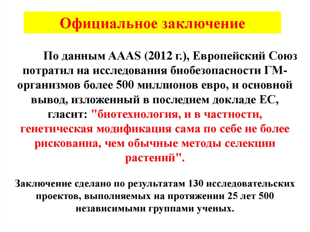 Официальное заключениеПо данным AAAS (2012 г.), Европейский Союз