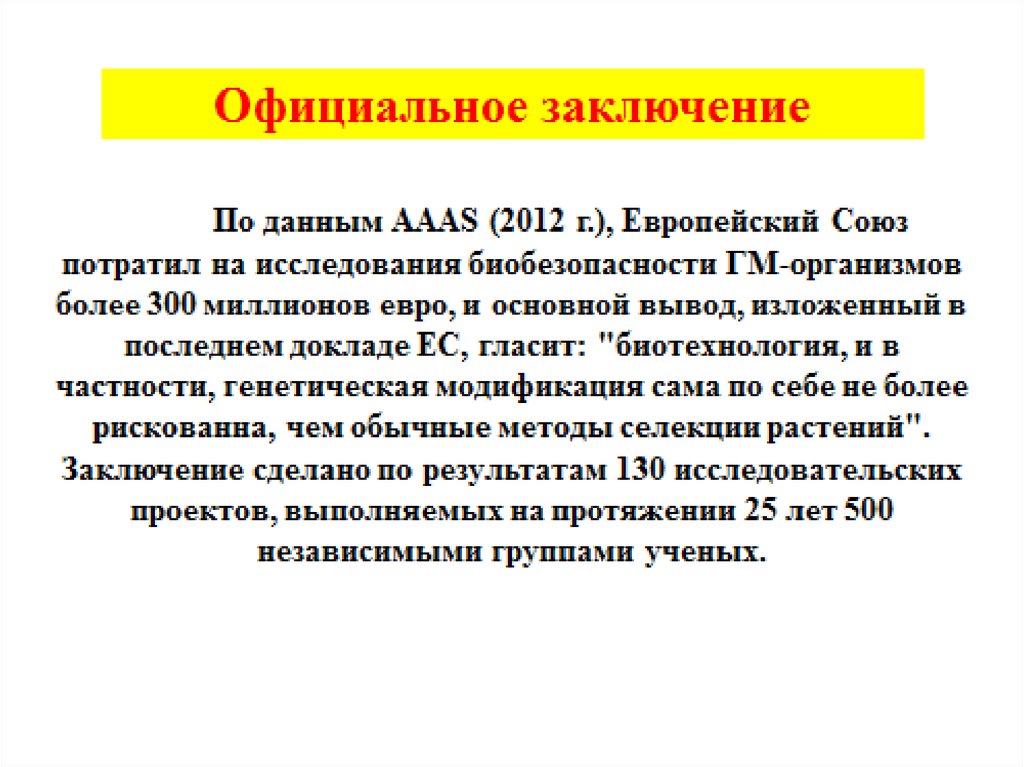 потратил на исследования биобезопасности ГМорганизмов более 500 миллионов евро, и основной