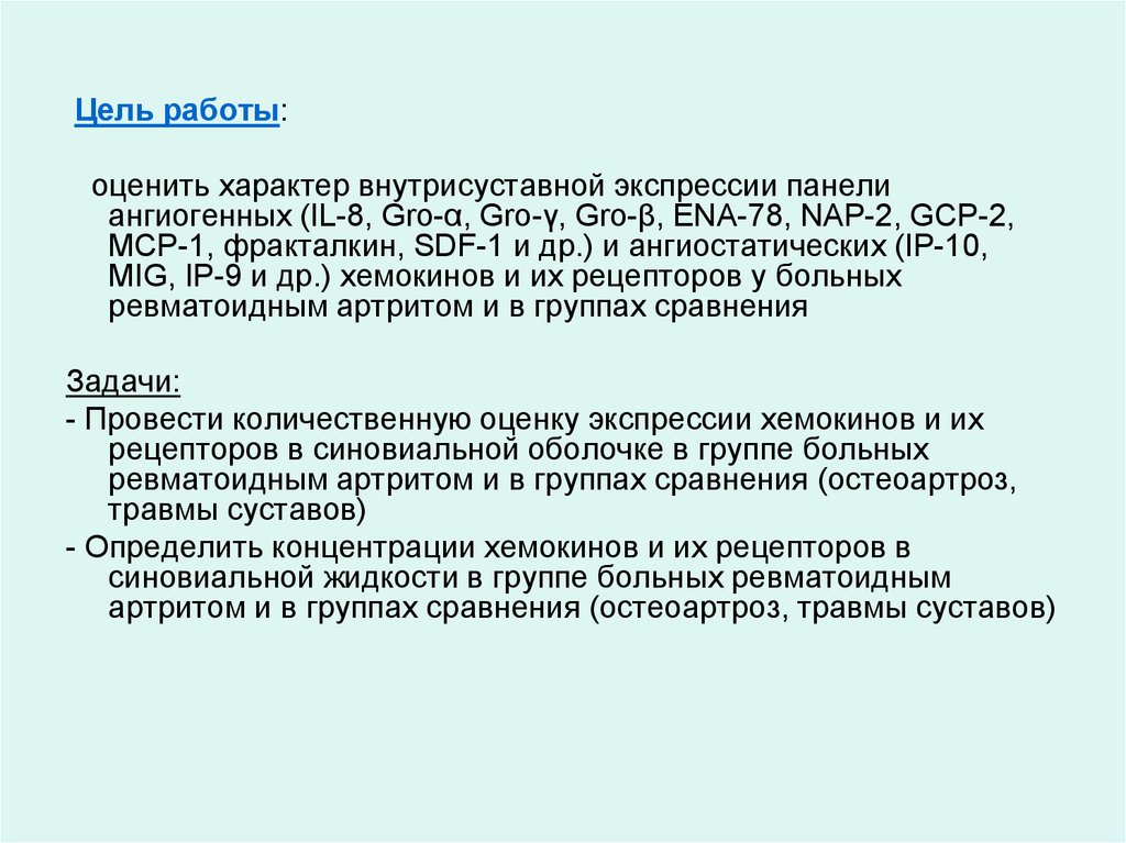 Цель работы:оценить характер внутрисуставной экспрессии панели