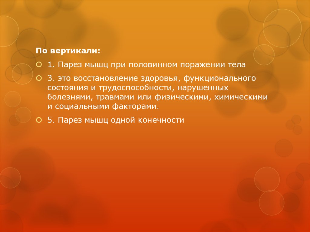 По вертикали:1. Парез мышц при половинном поражении тела