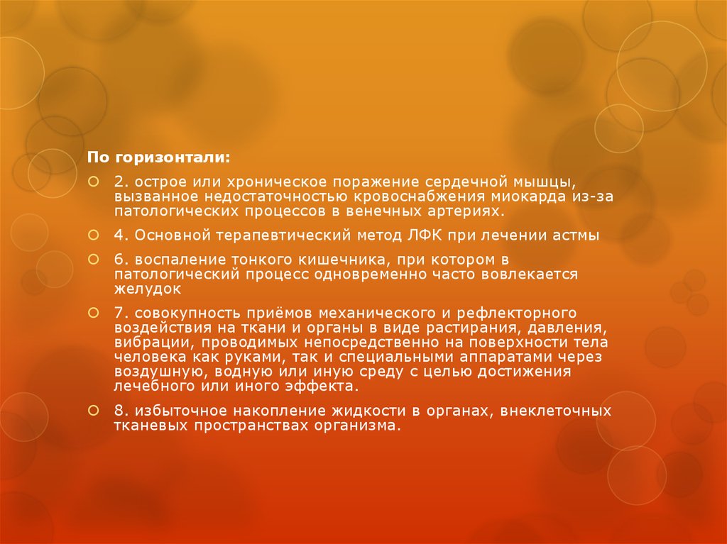 По горизонтали:2. острое или хроническое поражение сердечной мышцы,