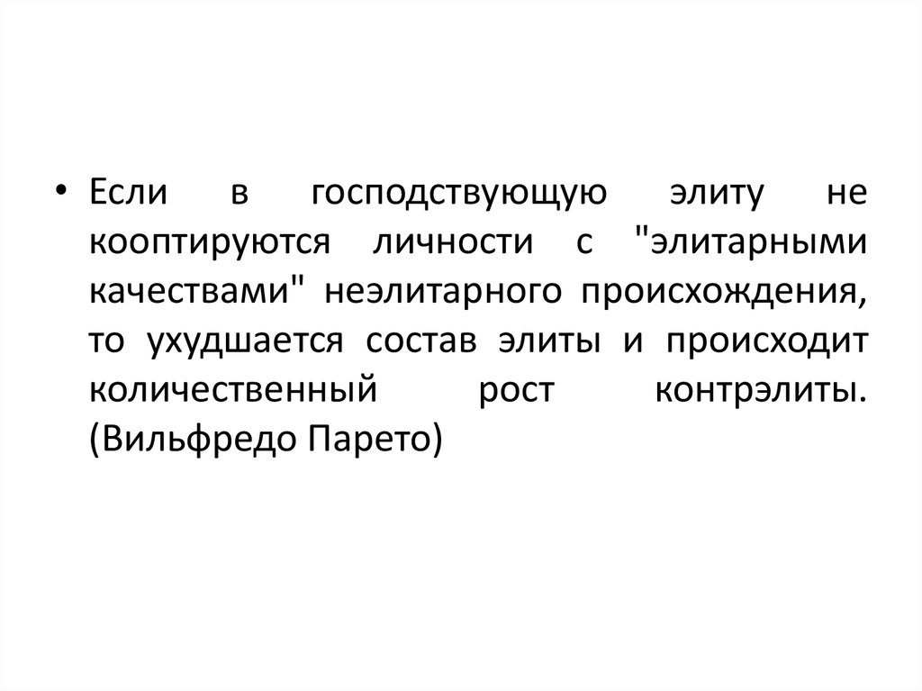 • Если в господствующую элиту некооптируются личности с "элитарными