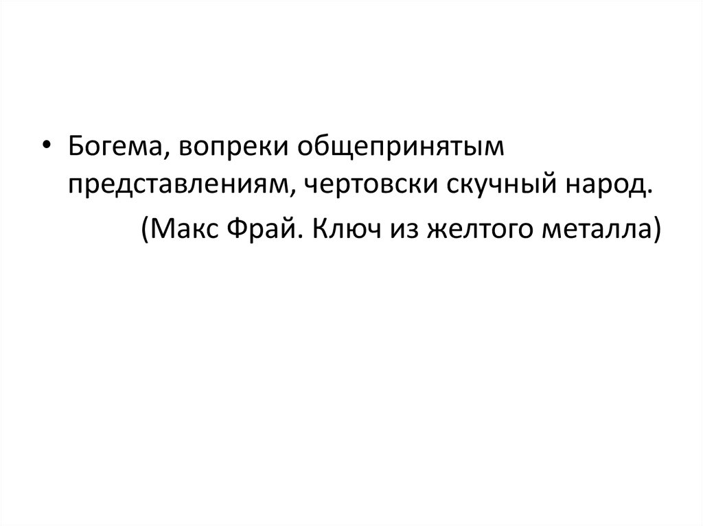 • Богема, вопреки общепринятымпредставлениям, чертовски скучный народ.