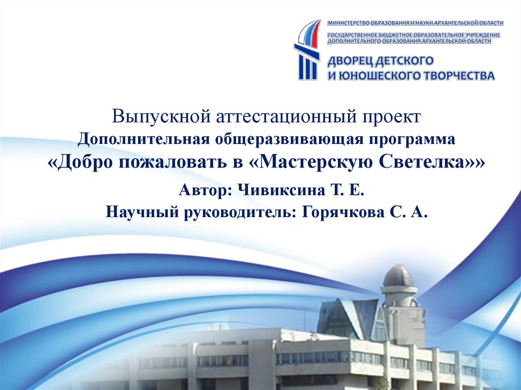 Выпускной аттестационный проект. Дополнительная общеразвивающая программа «Добро пожаловать в «Мастерскую Светелка»