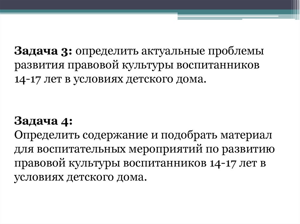 Задача 3: определить актуальные проблемыразвития правовой культуры воспитанников