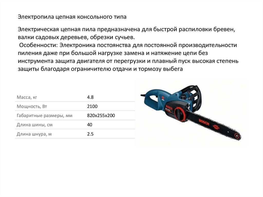 Электропила цепная консольного типаЭлектрическая цепная пила предназначена для быстрой распиловки бревен,
