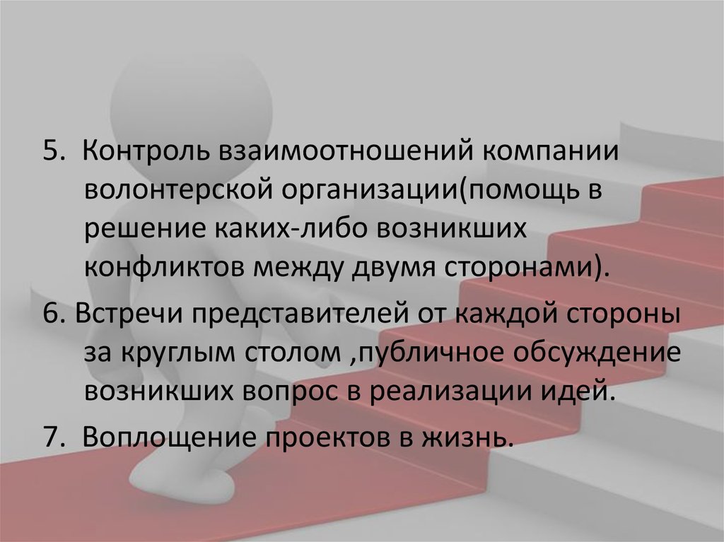5. Контроль взаимоотношений компанииволонтерской организации(помощь в