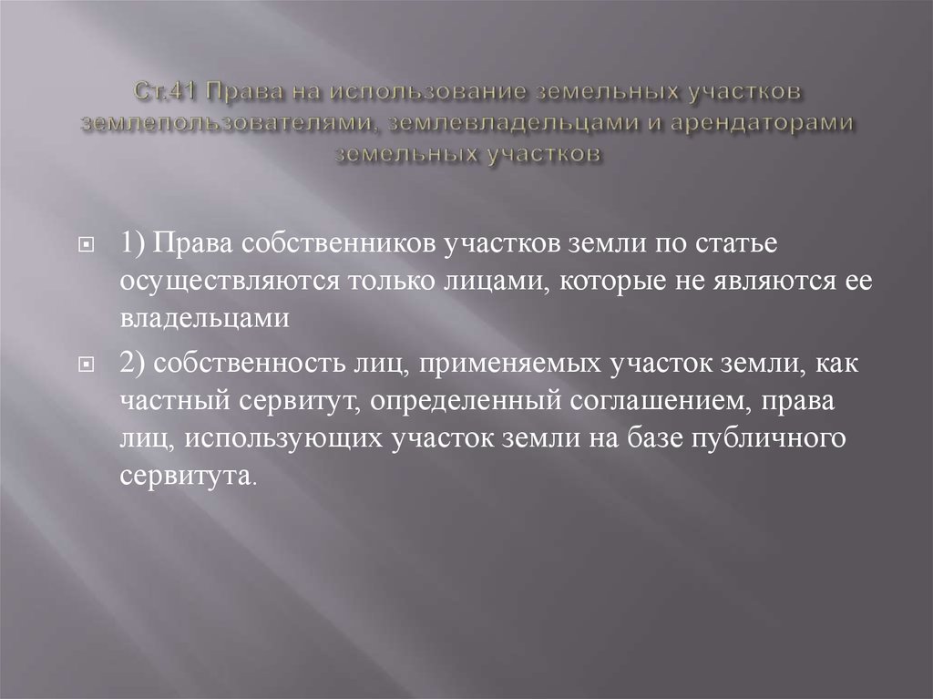 1) Права собственников участков земли по статьеосуществляются только лицами, которые не являются ее