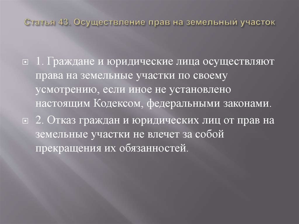 1. Граждане и юридические лица осуществляютправа на земельные участки по своему
