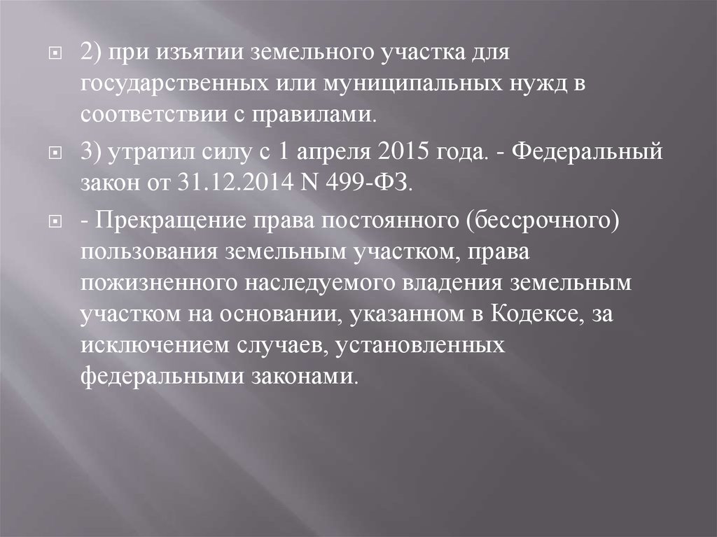 2) при изъятии земельного участка длягосударственных или муниципальных нужд в