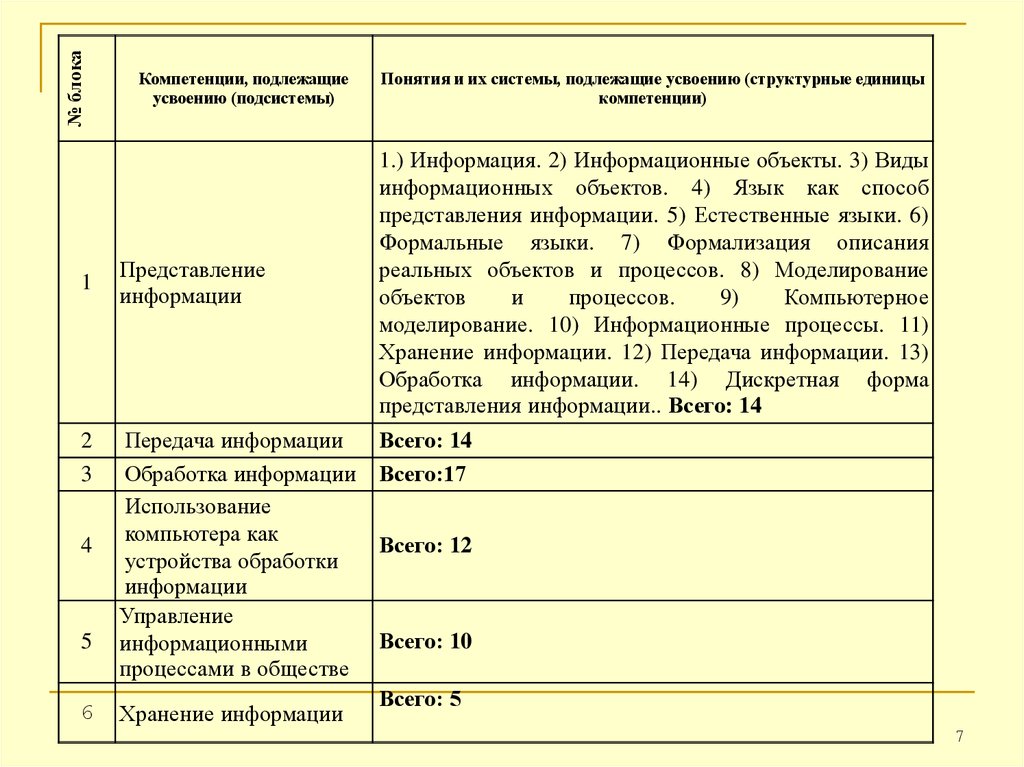 Понятия и их системы, подлежащие усвоению (структурные единицы
