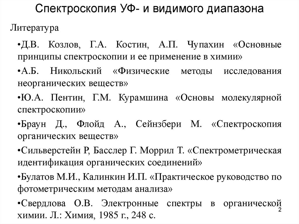 Спектроскопия УФ- и видимого диапазонаЛитература