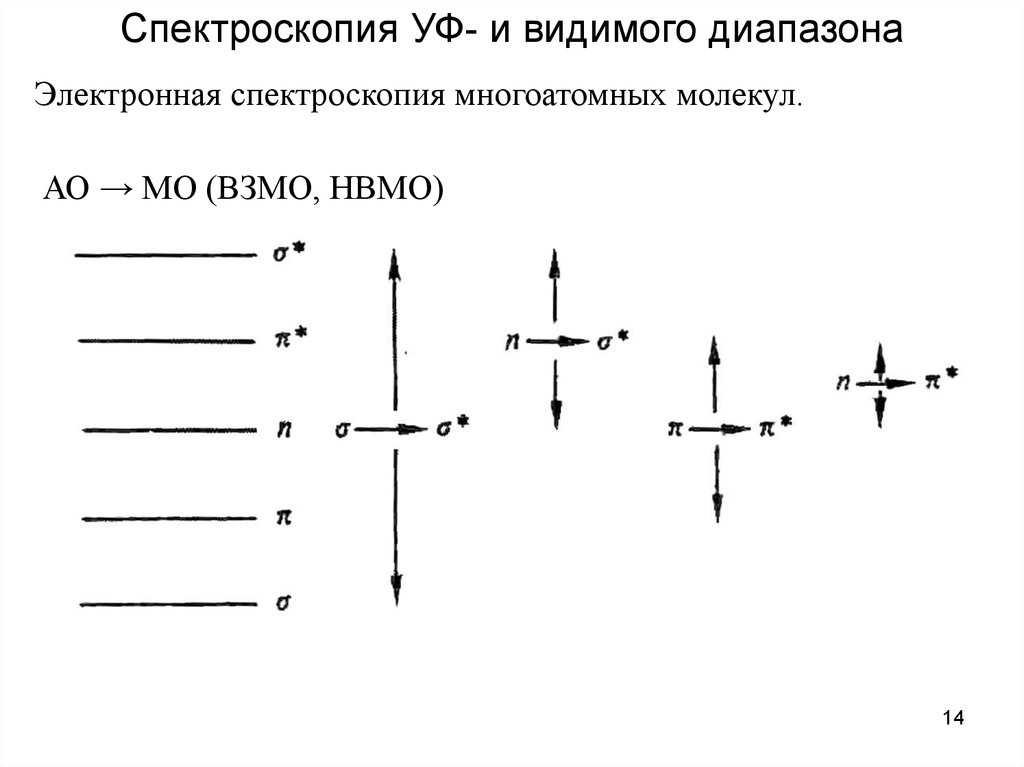 Спектроскопия УФ- и видимого диапазонаЭлектронная спектроскопия многоатомных молекул.
