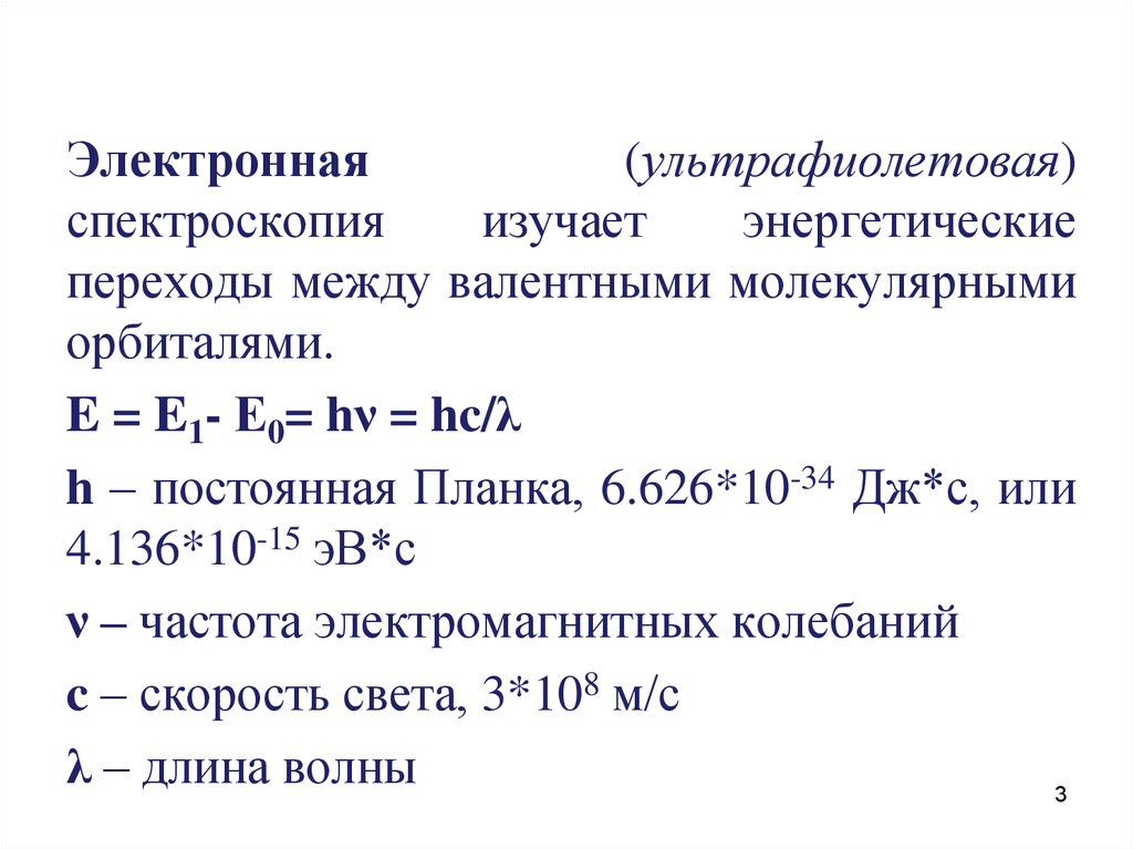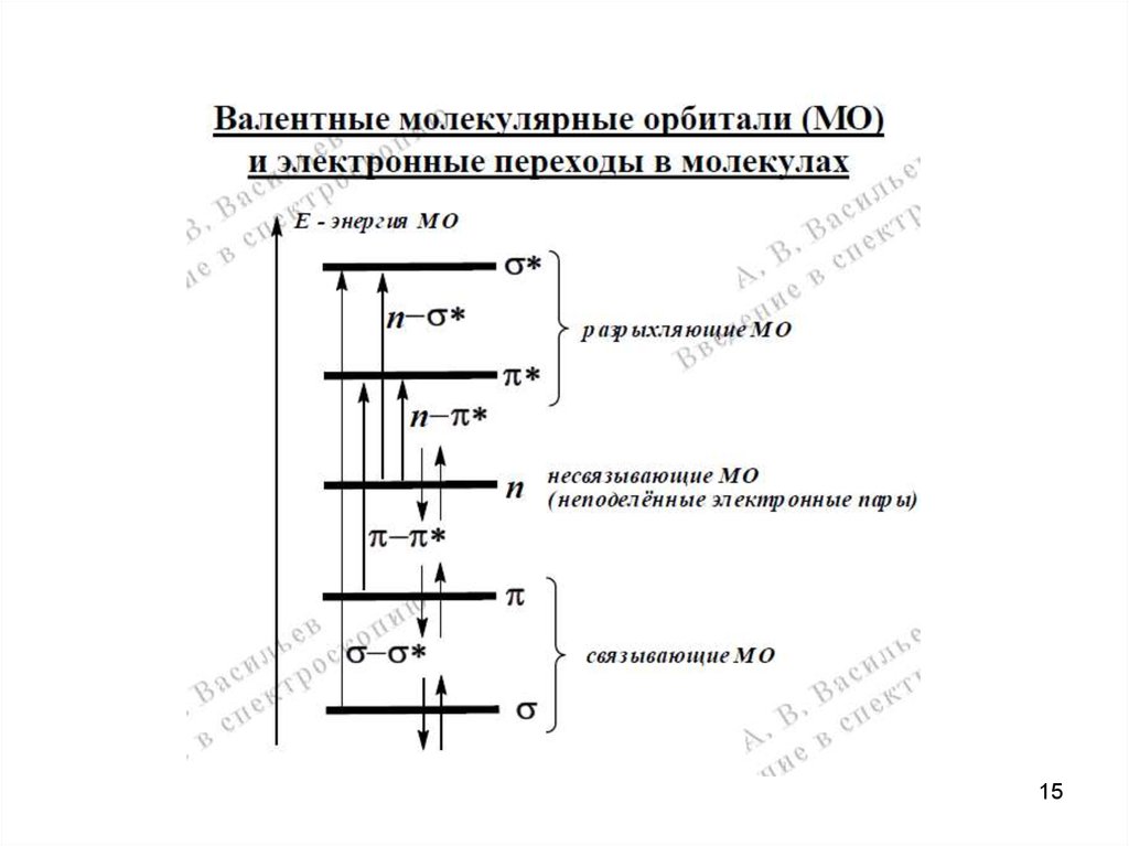 1. Большинство электронных переходов в молекулахпроявляются в диапазоне 200-750 нм, который