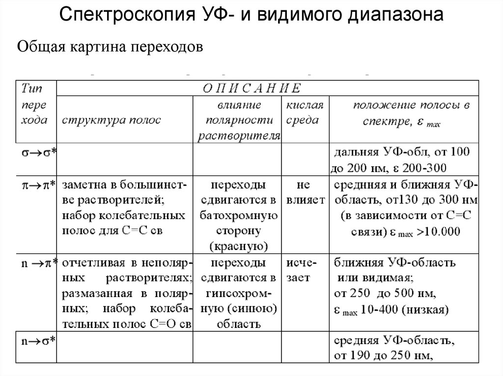 Спектроскопия УФ- и видимого диапазонаОбщая картина переходов