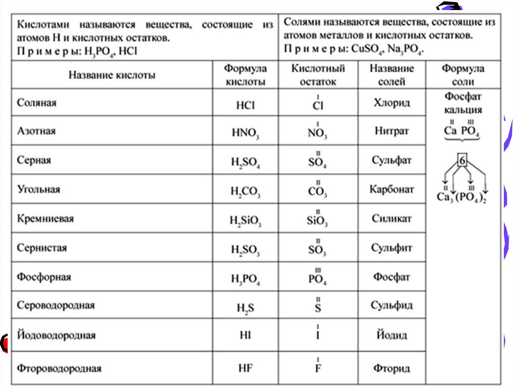 таблицу с кислотами: