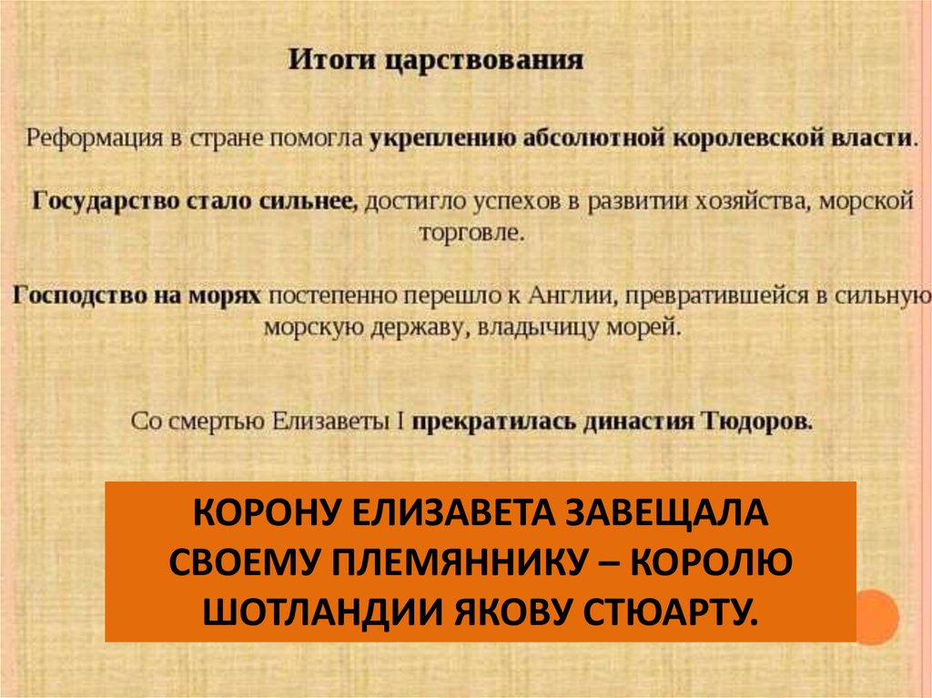 КОРОНУ ЕЛИЗАВЕТА ЗАВЕЩАЛАСВОЕМУ ПЛЕМЯННИКУ – КОРОЛЮ