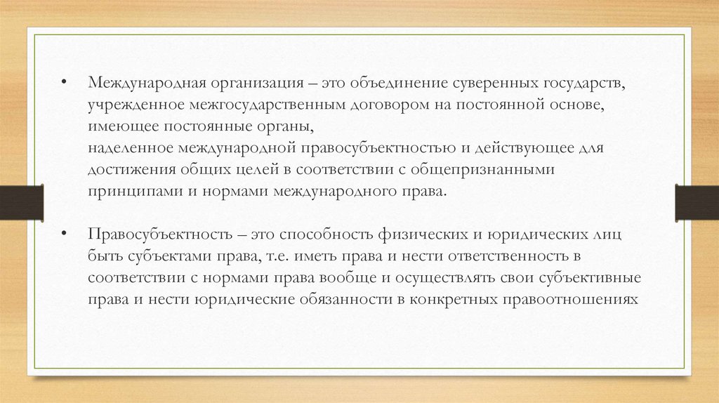 • Международная организация создается и действует в соответствии с нормамимеждународного права;