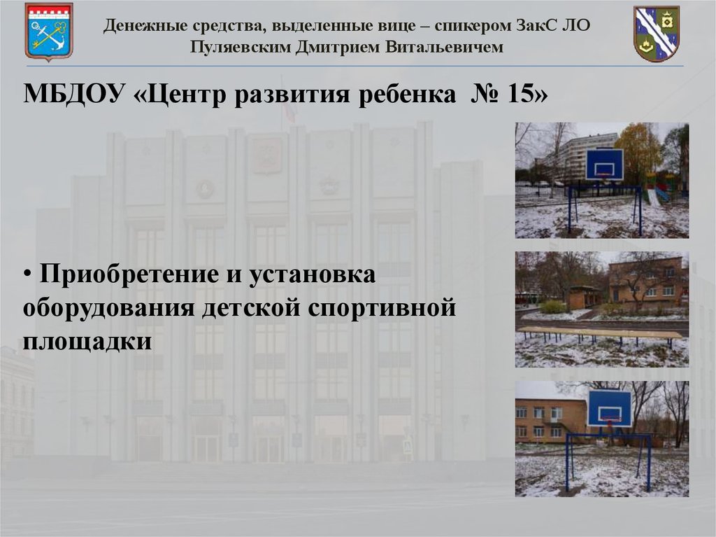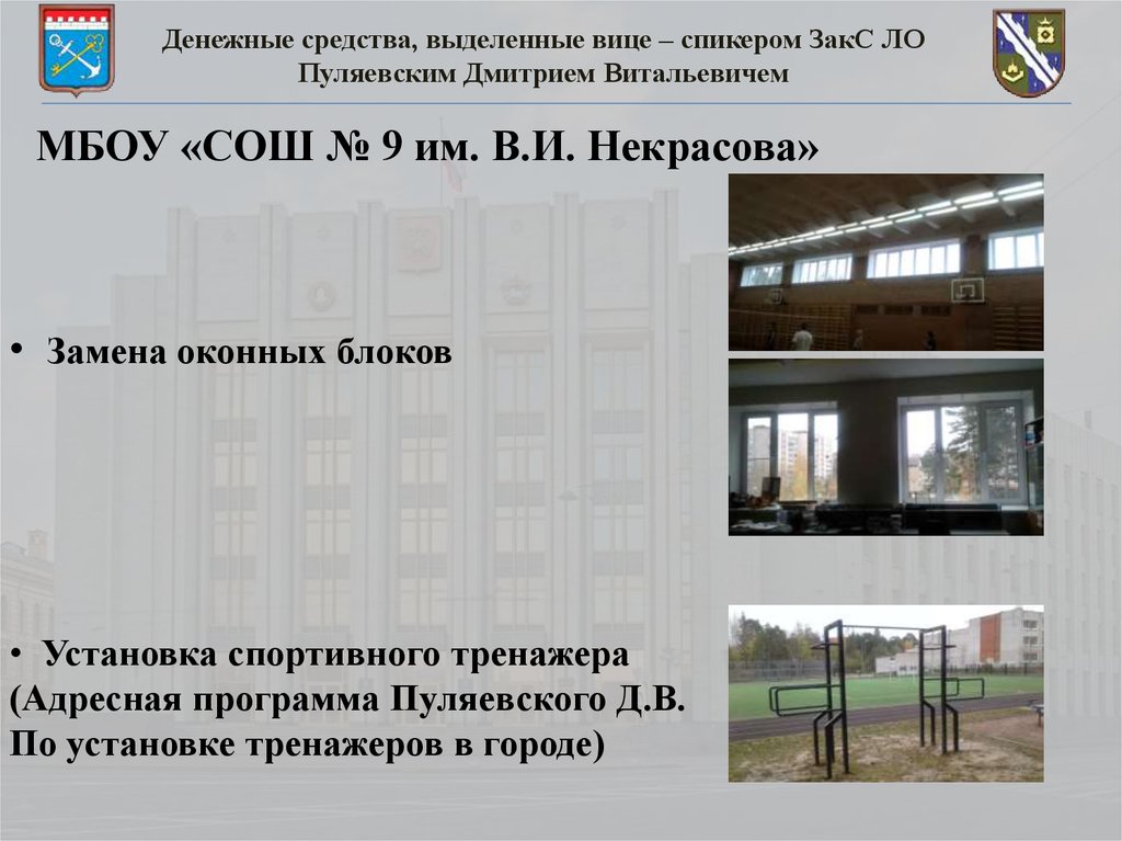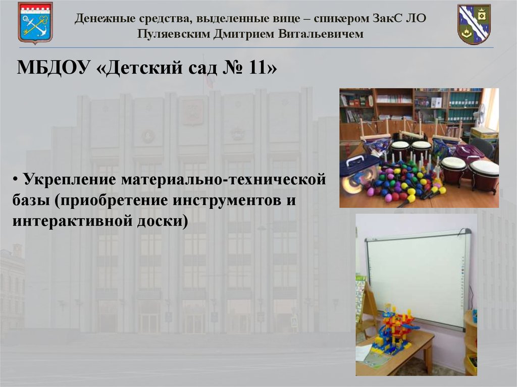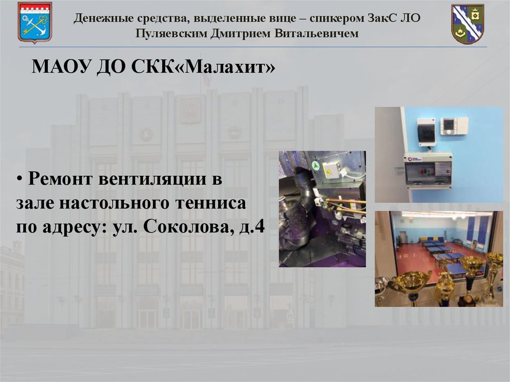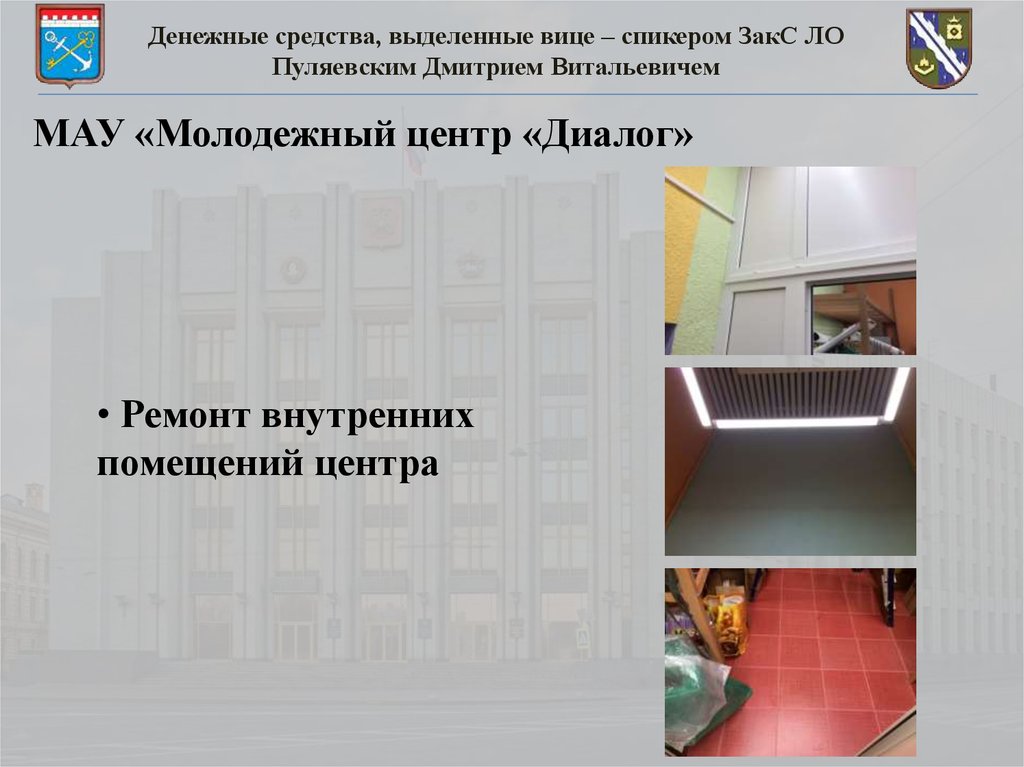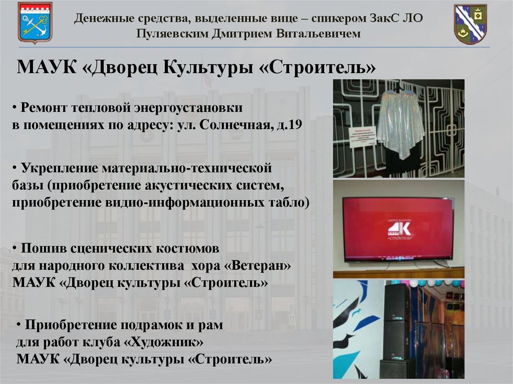 Информация о расходовании денежных средств, предоставленных вице-спикером Законодательного собрания Ленинградской области
