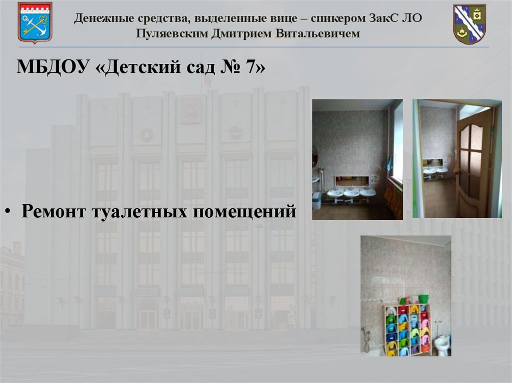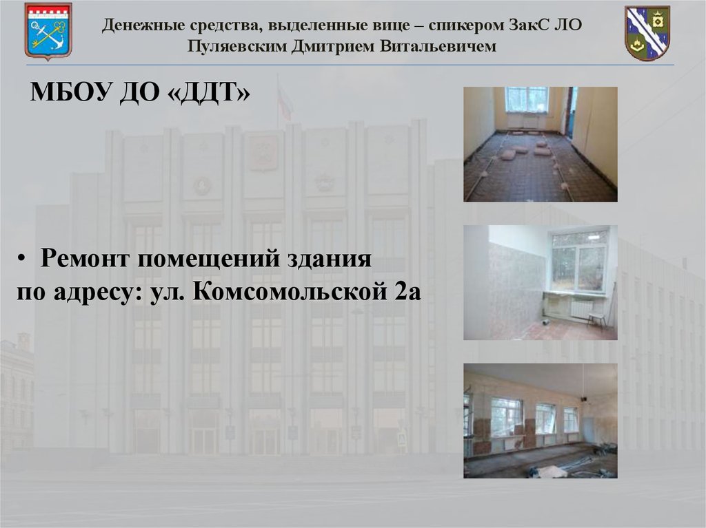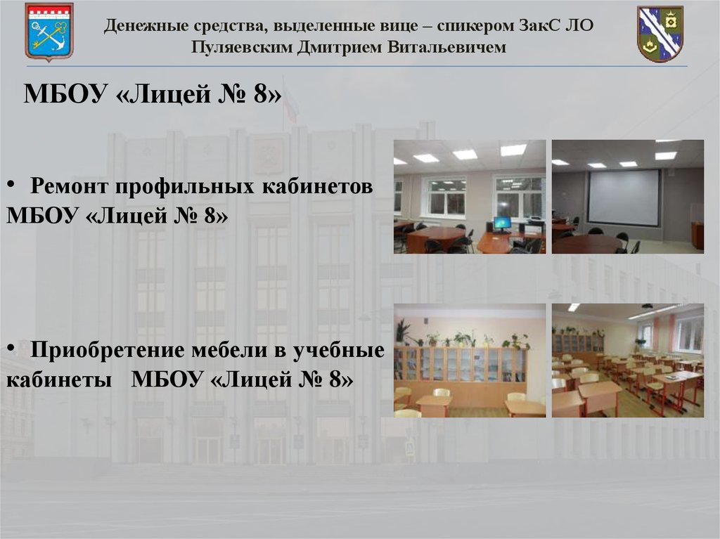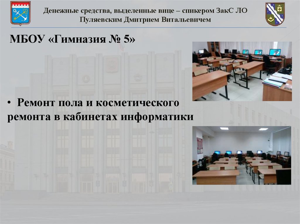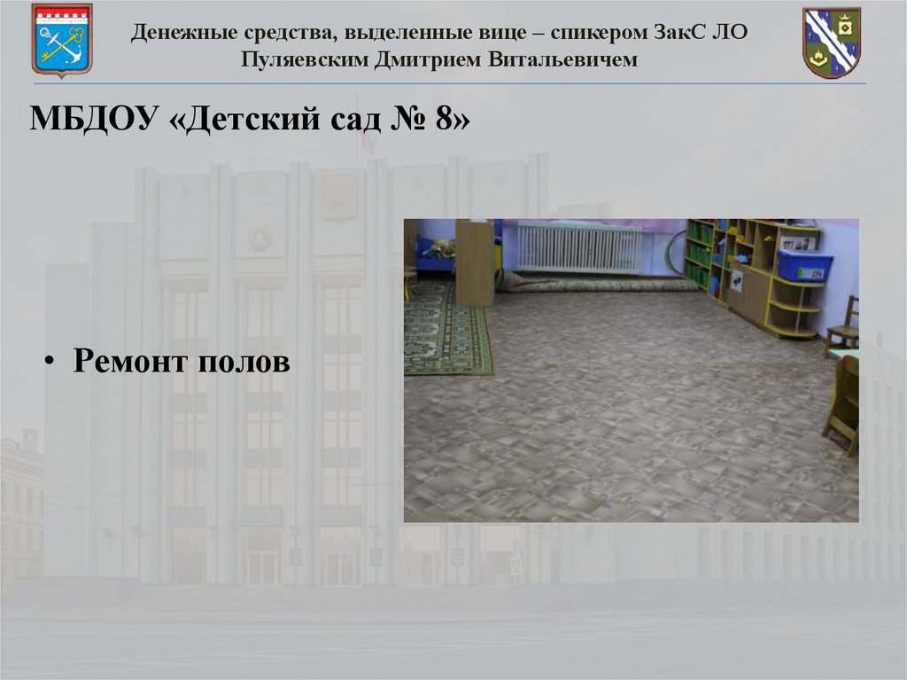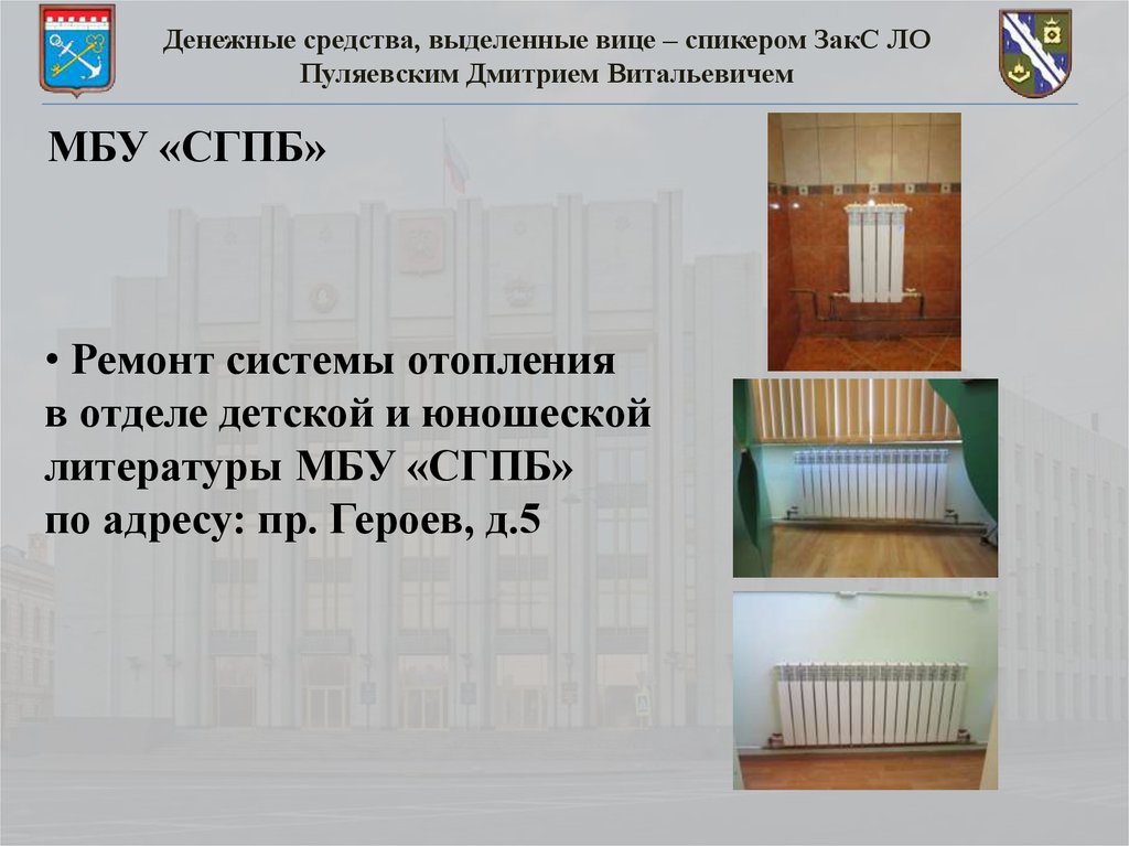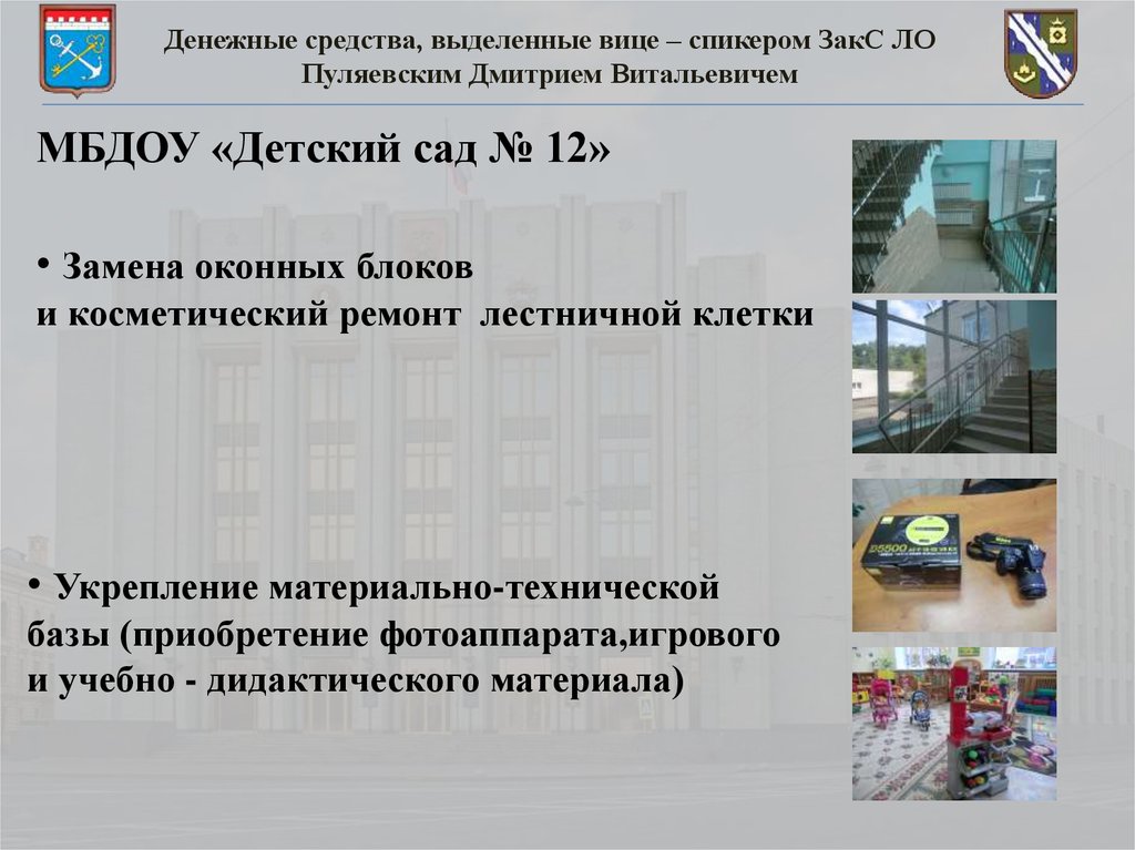 Информация о расходовании денежных средств, предоставленных вице-спикером Законодательного собрания Ленинградской области