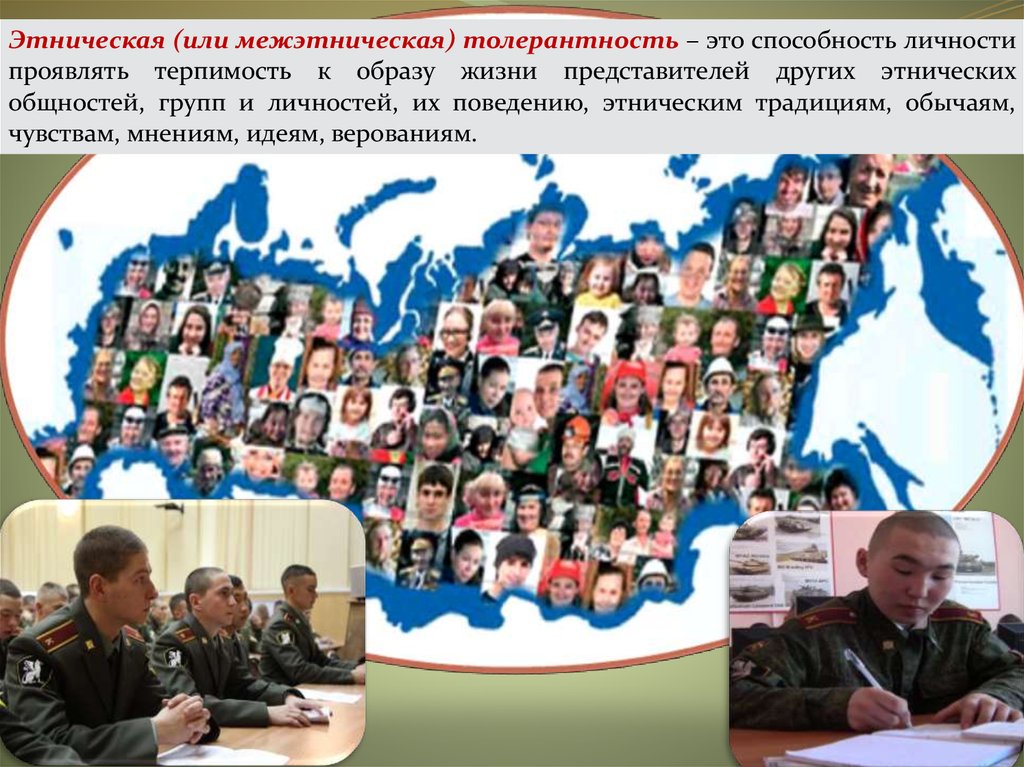 Этническая (или межэтническая) толерантность – это способность личностипроявлять терпимость к образу жизни представителей других этнических