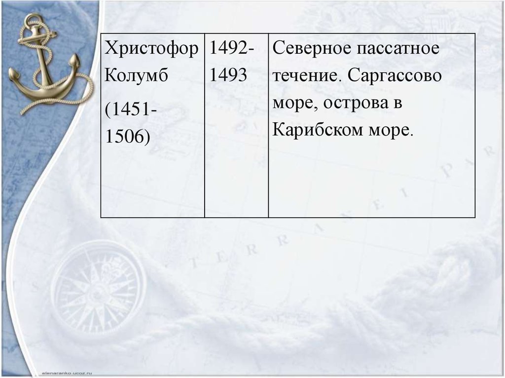 Христофор 1492- Северное пассатноеКолумб