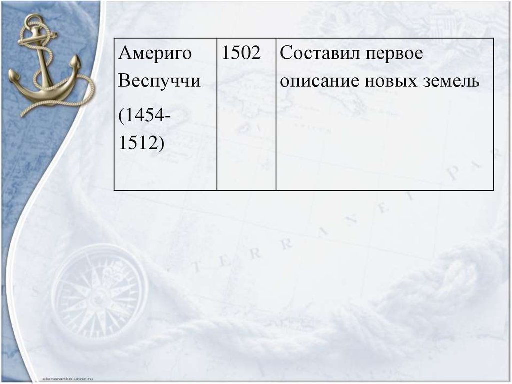 Америго 1502 Составил первоеВеспуччи
