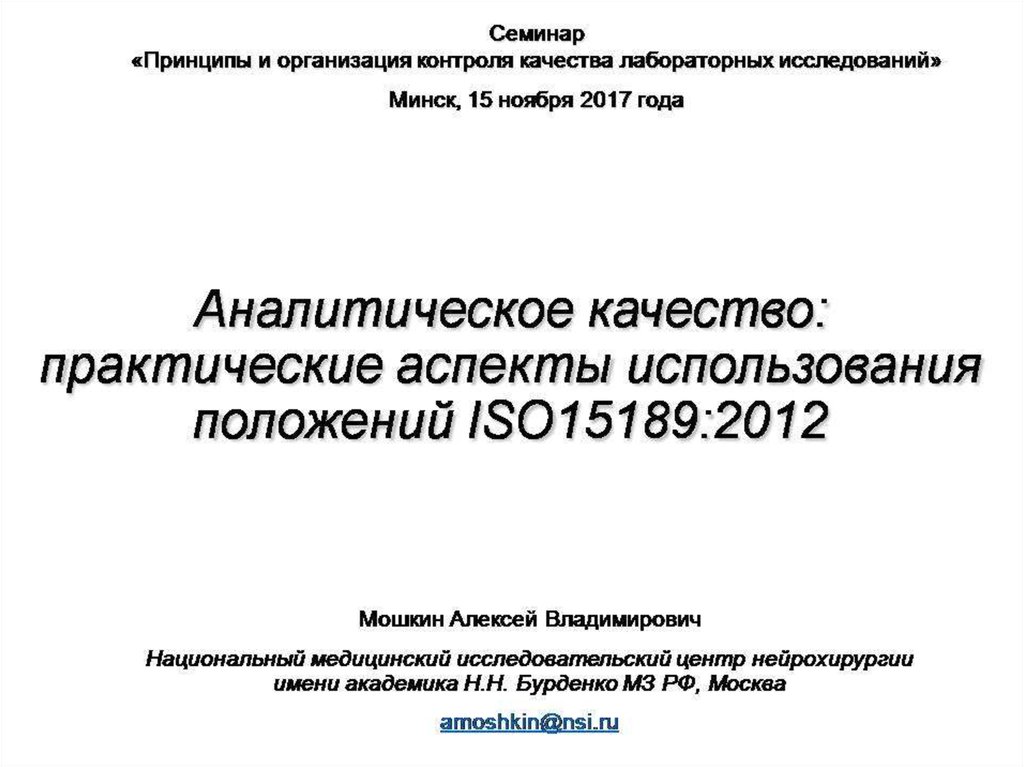 Аналитическое качество: практические аспекты использования положений ISO15189:2012