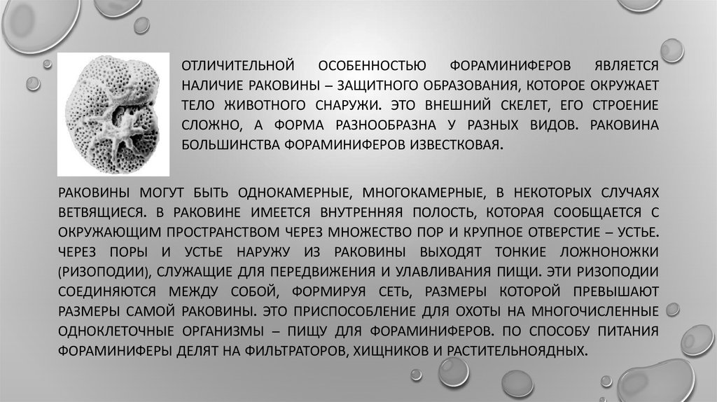 ФОРАМИНИФЕРЫ ДЕЛЯТ НА ФИЛЬТРАТОРОВ, ХИЩНИКОВ И РАСТИТЕЛЬНОЯДНЫХ.