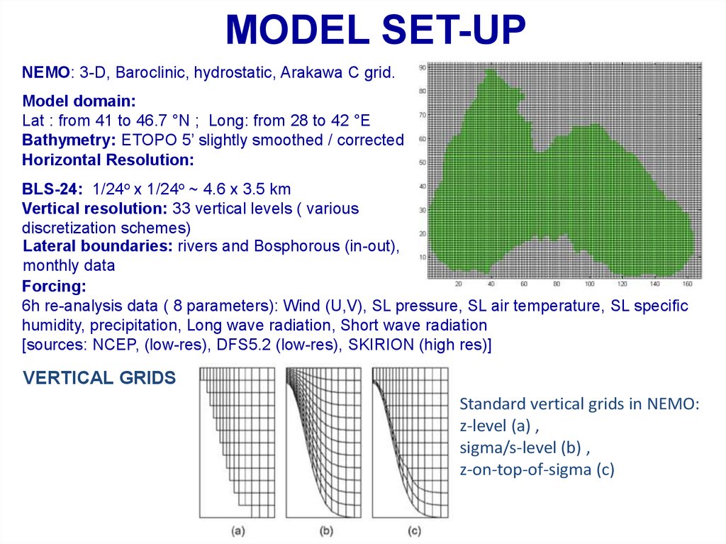 MODEL SET-UPNEMO: 3-D, Baroclinic, hydrostatic, Arakawa C grid.