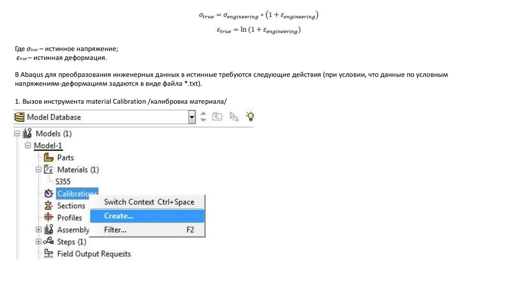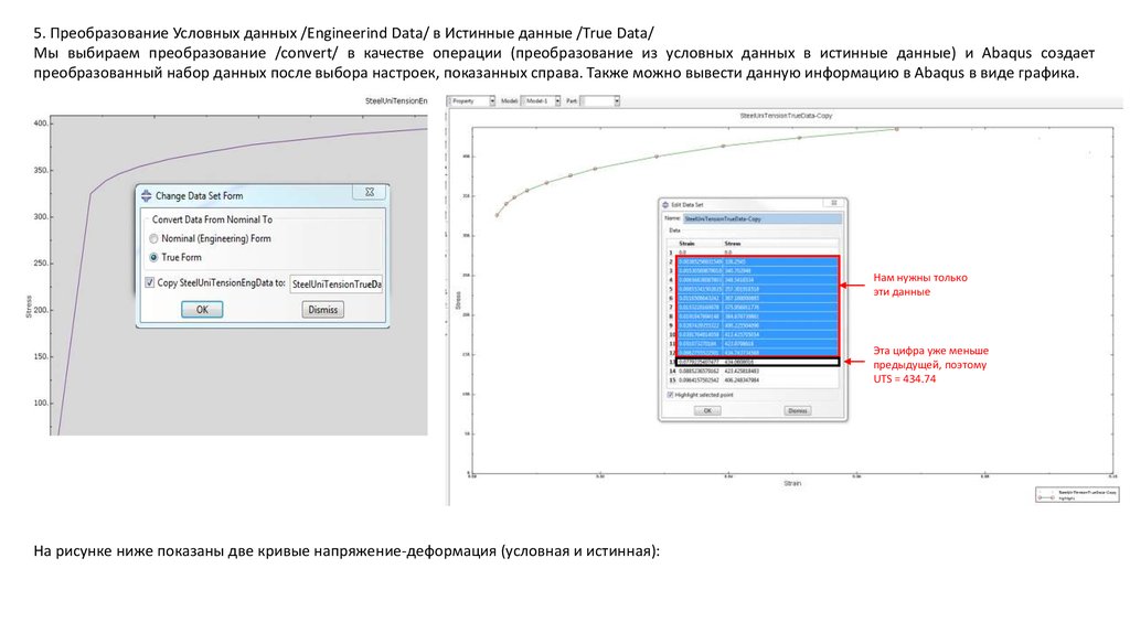 В Abaqus для преобразования инженерных данных в истинные требуются следующие действия (при условии, что данные по условным