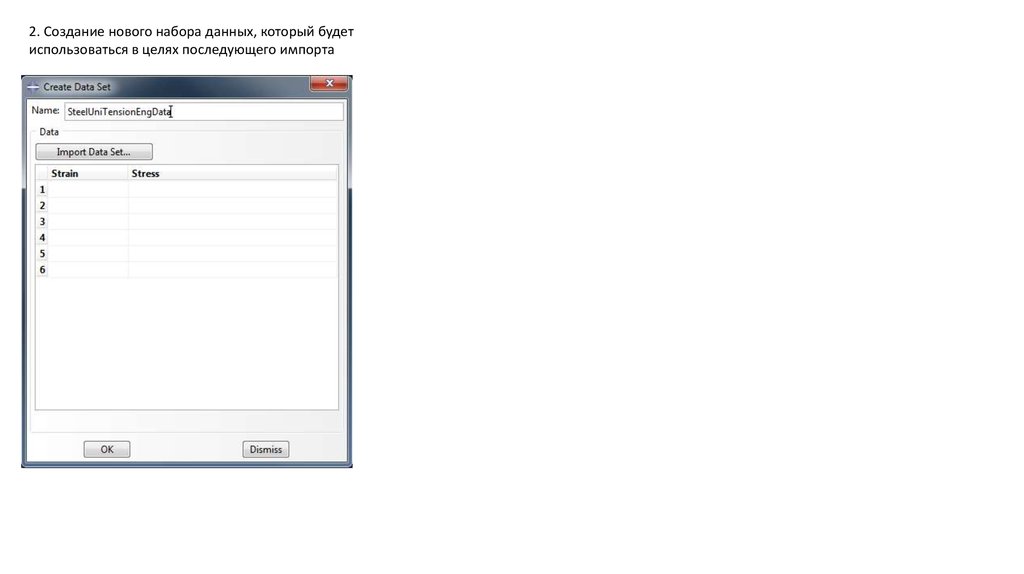 2. Создание нового набора данных, который будетиспользоваться в целях последующего импорта