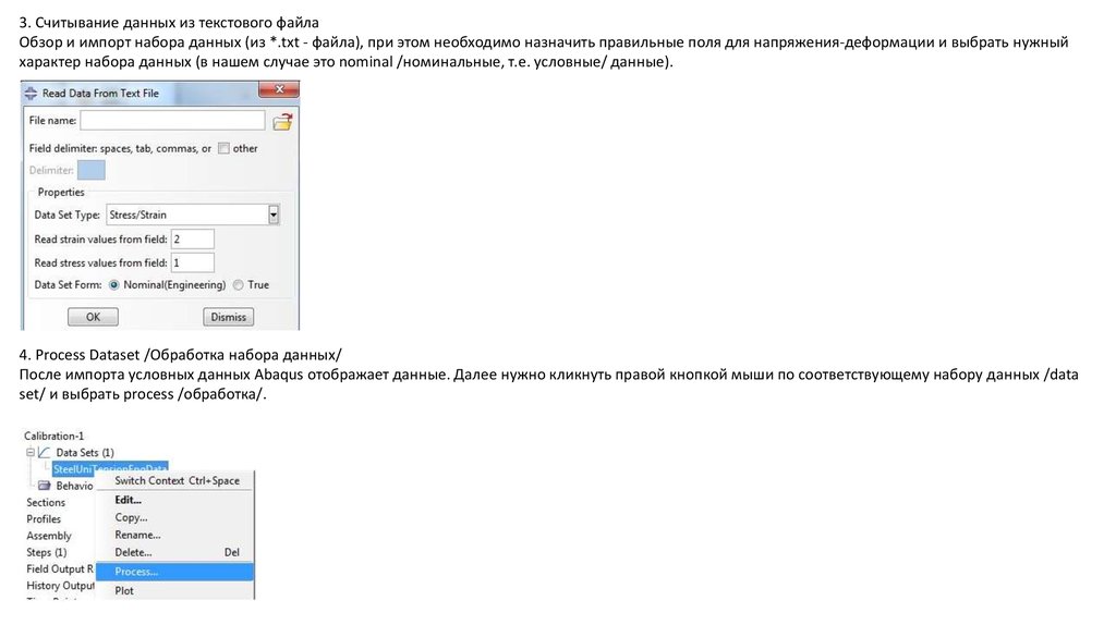 3. Считывание данных из текстового файлаОбзор и импорт набора данных (из *.txt - файла), при этом необходимо назначить правильные поля для напряжения-деформации и выбрать нужный