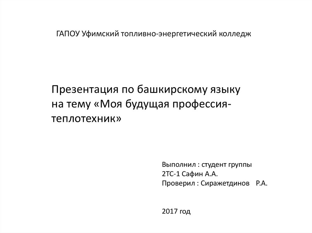 ГАПОУ Уфимский топливно-энергетический колледжПрезентация по башкирскому языку