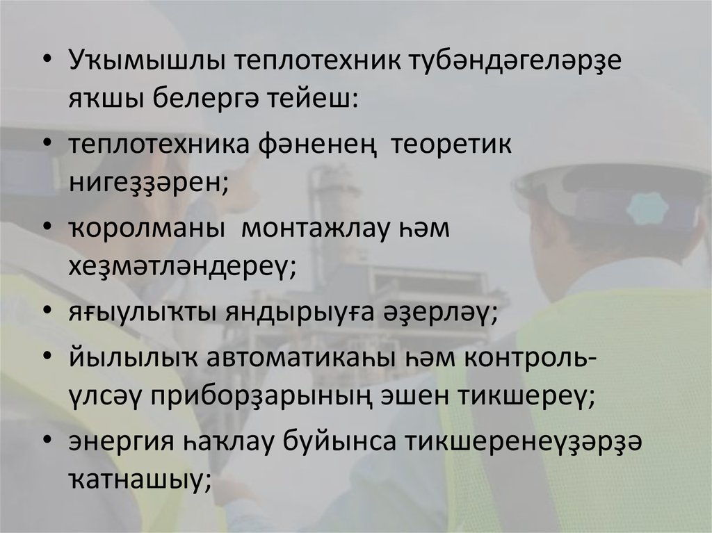• Уҡымышлы теплотехник тубәндәгеләрҙеяҡшы белергә тейеш: