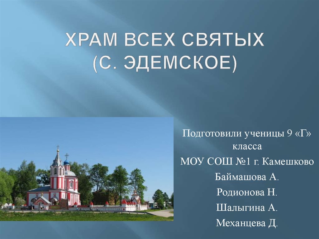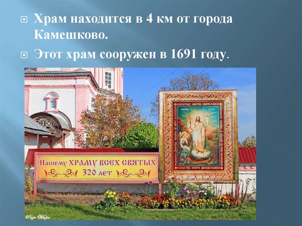 Самый древний храм – церковь вчесть Всех Святых с приделом во имя
