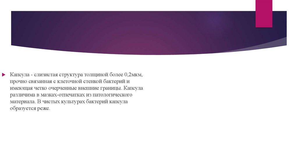 Капсула - слизистая структура толщиной более 0,2мкм,прочно связанная с клеточной стенкой бактерий и