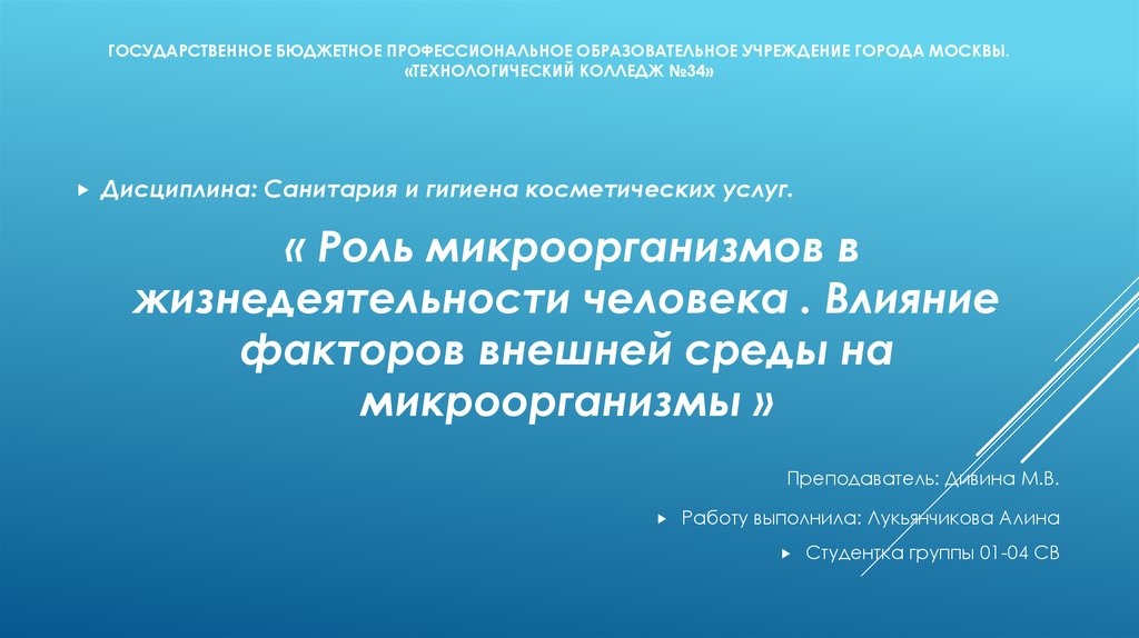 Роль микроорганизмов в жизнедеятельности человека. Влияние факторов внешней среды на микроорганизмы