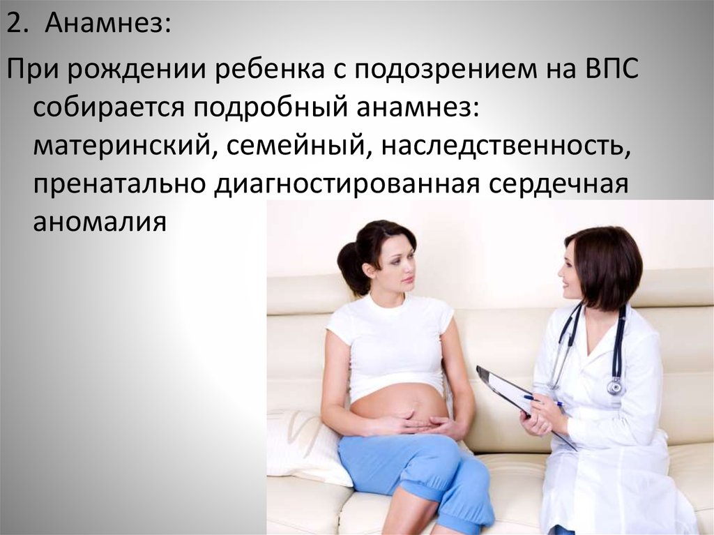 2. Анамнез:При рождении ребенка с подозрением на ВПС