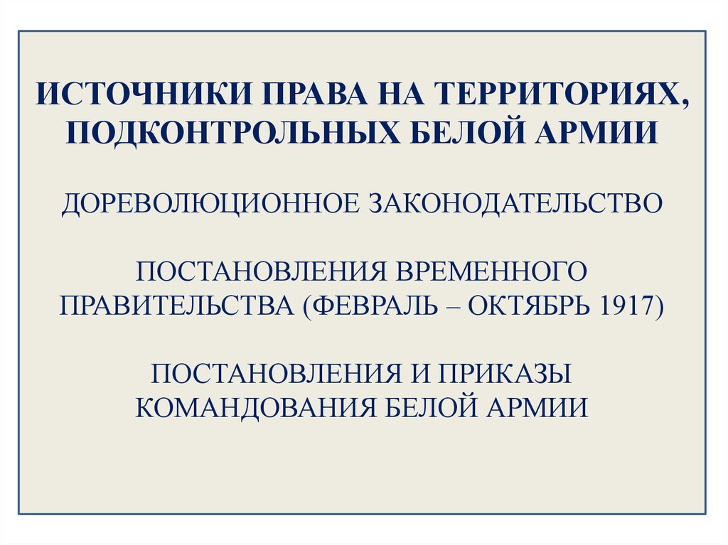 ИСТОЧНИКИ ПРАВА НА ТЕРРИТОРИЯХ,ПОДКОНТРОЛЬНЫХ БЕЛОЙ АРМИИ
