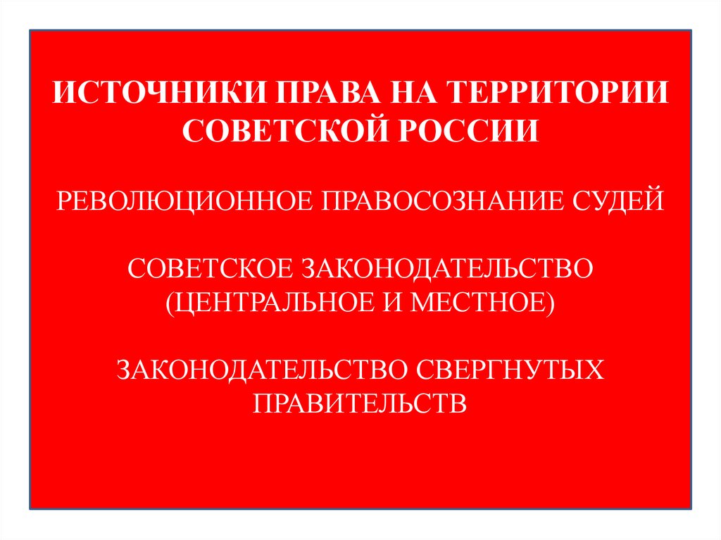 ИСТОЧНИКИ ПРАВА НА ТЕРРИТОРИИСОВЕТСКОЙ РОССИИ