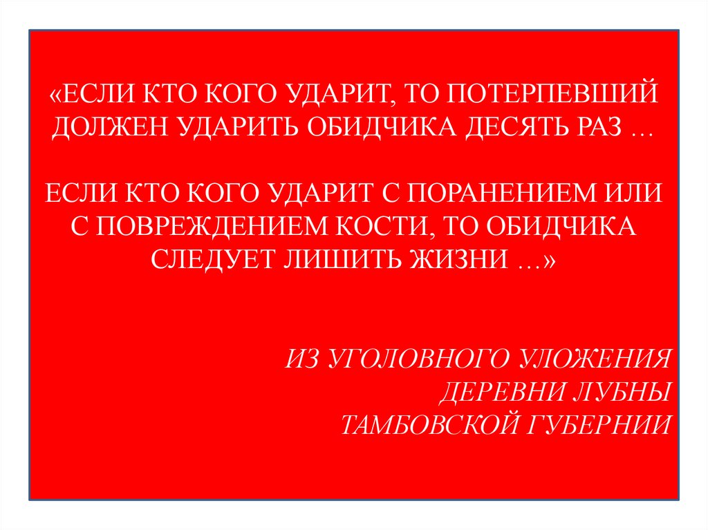 «ЕСЛИ КТО КОГО УДАРИТ, ТО ПОТЕРПЕВШИЙДОЛЖЕН УДАРИТЬ ОБИДЧИКА ДЕСЯТЬ РАЗ …